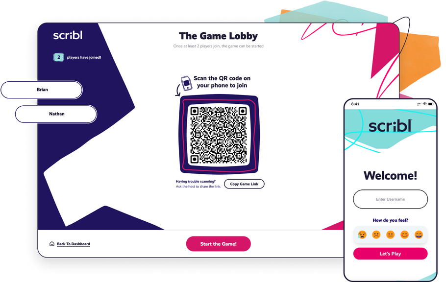 Scribl is designed for small teams of up to 12 players; however, it can support many more. Our in-game guide can help you navigate larger games, or you can reach out to our team to help curate your larger event.